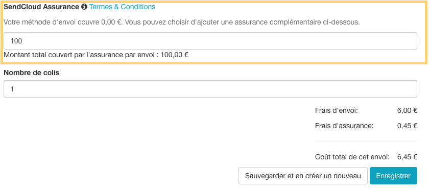 Quand vous créez un envoi manuellement, vous pouvez renseigner la valeur marchande du colis que vous voulez assurer. Vous avez connecté votre boutique en ligne avec Sendcloud ? Après l’import de vos commandes, cliquez sur l’envoi que vous souhaitez assurer. Vous pouvez alors renseigner la valeur marchande à assurer pour chaque commande. Important : Choisissez la méthode d’envoi et une valeur à assurer corrects, avant de traiter les commandes ou de sauvegarder l’envoi. Après avoir sauvegardé l’envoi(s), vous ne pourrez plus opter pour une assurance complémentaire.